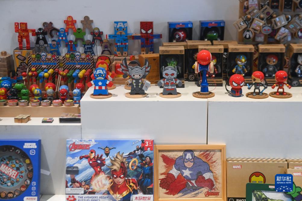8月31日,位于云和縣的浙江和信玩具集團有限公司展廳內展示著經過品牌授權的動漫木制玩具。