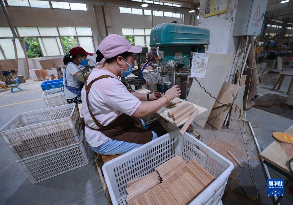 8月31日,在位于云和縣的浙江金馬工藝品有限公司的車間內,工人在加工木制玩具。