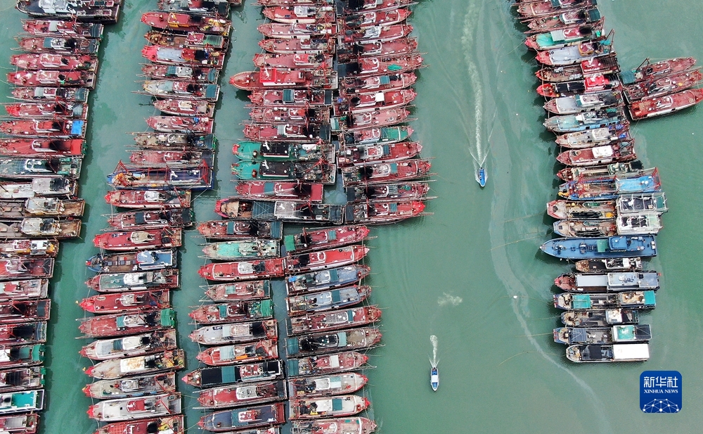 8月31日,在廣東省汕尾港避風塘,漁船歸港避風(無人機照片)。