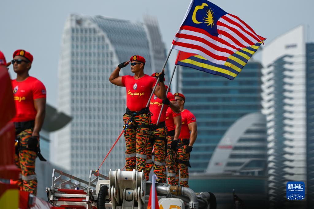 8月31日,消防員在馬來西亞普特拉賈亞參加馬來西亞獨立66周年慶典活動。