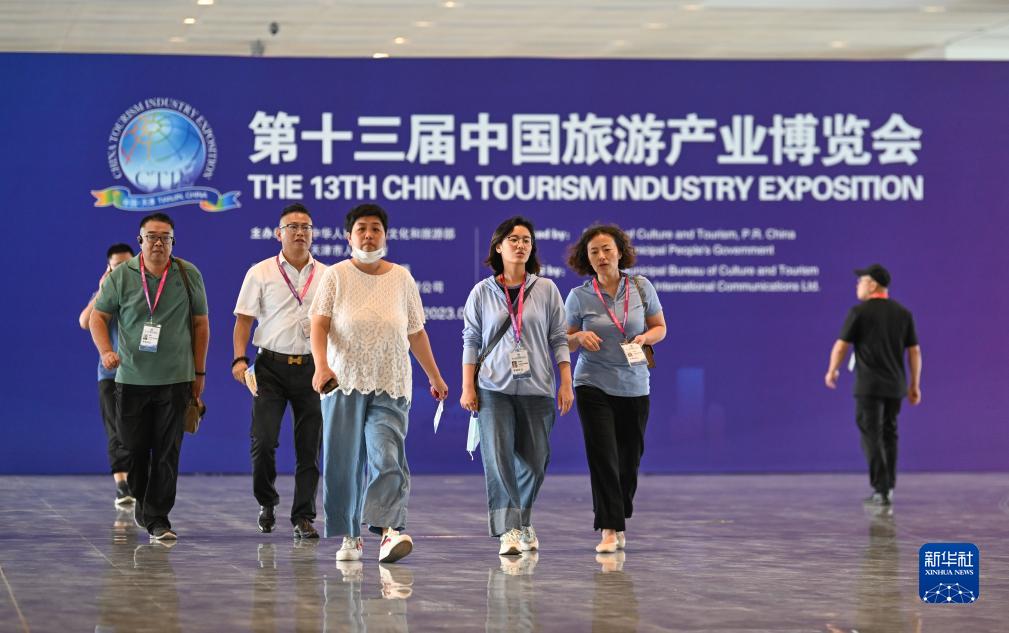 8月31日,在國家會展中心(天津),嘉賓走入第十三屆中國旅游產業博覽會展廳。