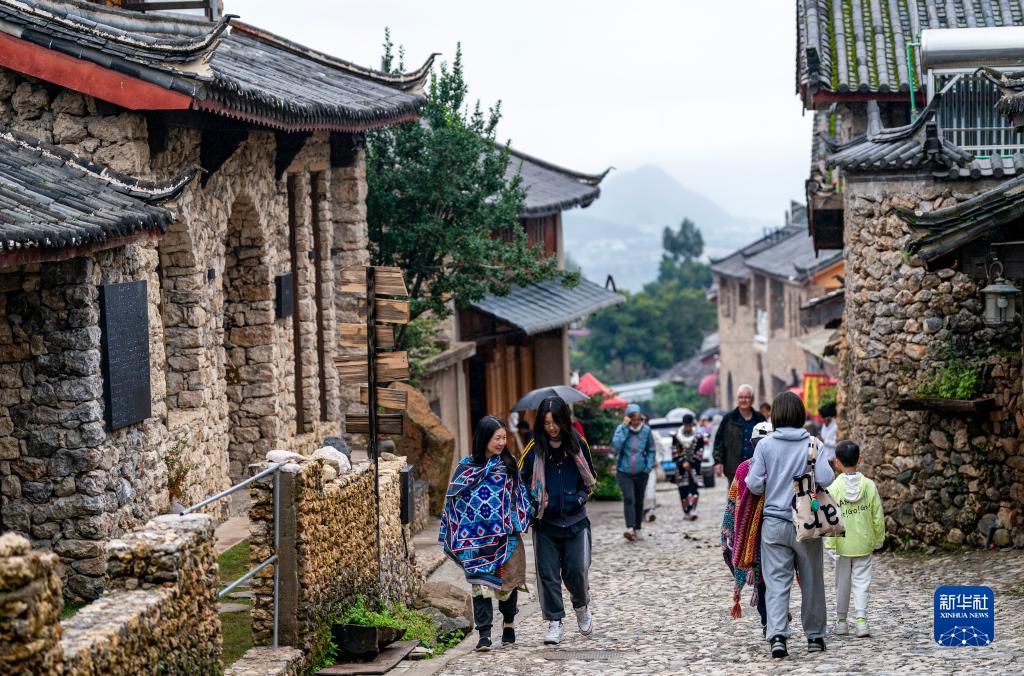 游客在麗江市玉龍納西族自治縣白沙鎮玉湖村觀光游覽(8月28日攝)。
