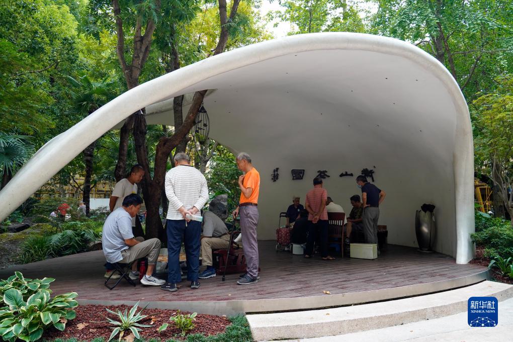8月31日,市民在上海市徐匯區衡山花園下棋休閑。