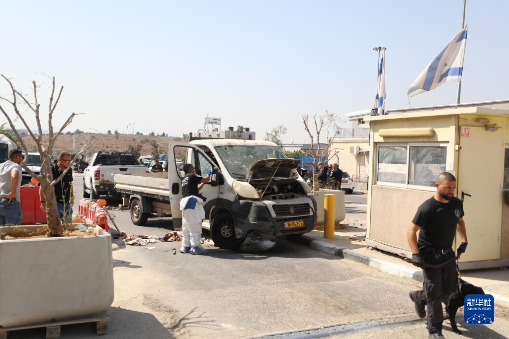 8月31日,以色列警方和安全人員在以色列中部城市莫迪因附近的襲擊事件現場開展工作。