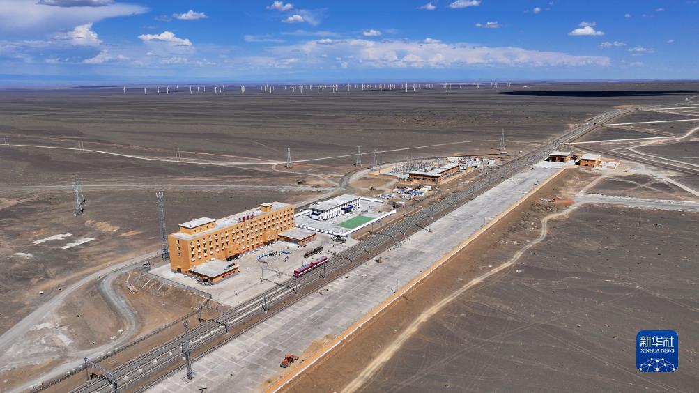 這是8月25日拍攝的將淖鐵路三塘湖站(無人機照片)。