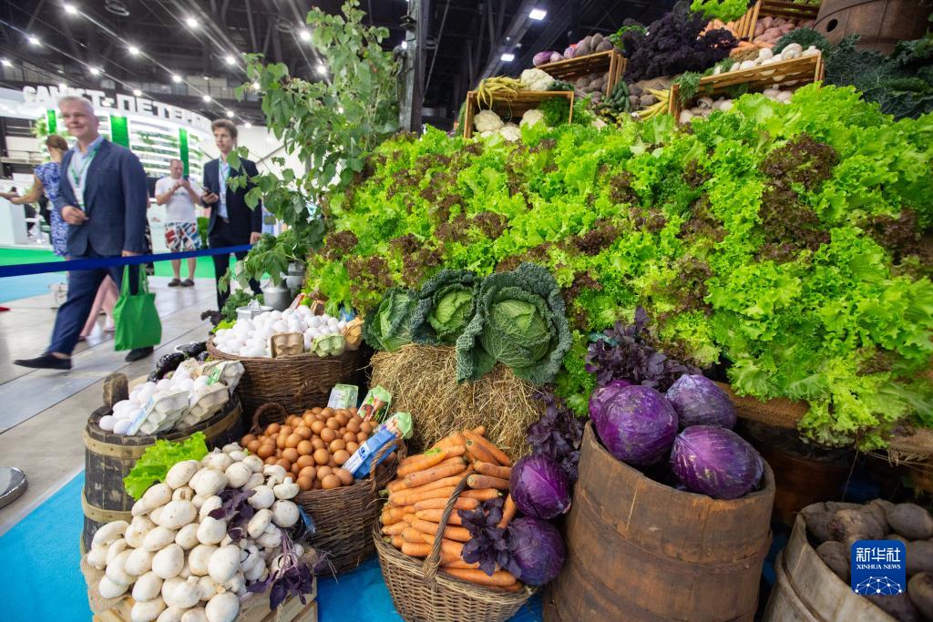 8月31日,參觀者在俄羅斯圣彼得堡第32屆國際農業工業展農產品展區參觀。