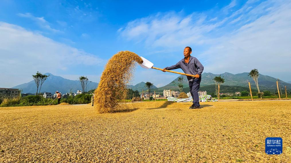 初秋時節,各地農民搶抓晴好天氣,加緊收獲、晾曬農作物。