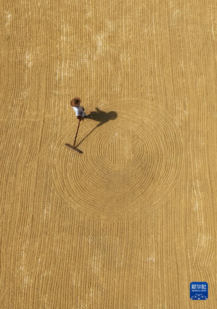 初秋時節,各地農民搶抓晴好天氣,加緊收獲、晾曬農作物。