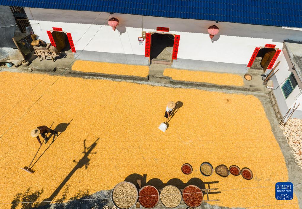 初秋時節,各地農民搶抓晴好天氣,加緊收獲、晾曬農作物。