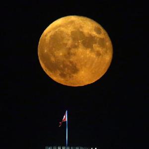 8月31日,“超級月亮”在土耳其安卡拉城堡上空升起。