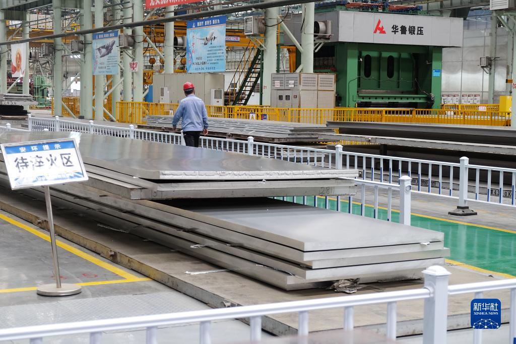 8月31日拍攝的東北輕合金有限責任公司中厚板廠的待淬火區。東輕公司在高精尖先進鋁加工關鍵技術方面處于領先地位,被譽為“中國鋁鎂加工業搖籃”。