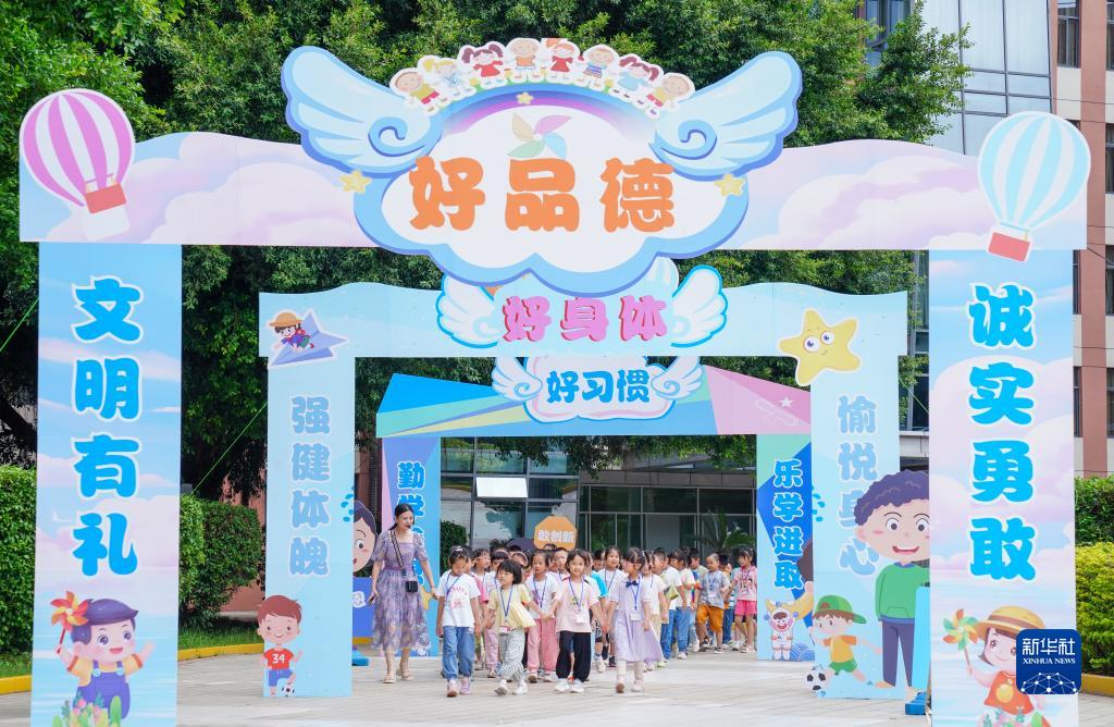 9月1日,福建省福州金山小學老師帶領一年級新生熟悉校園。