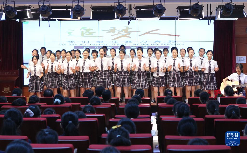 9月1日,北京市北師大實驗華夏女中的學生在開學典禮上合唱《我們都是追夢人》。