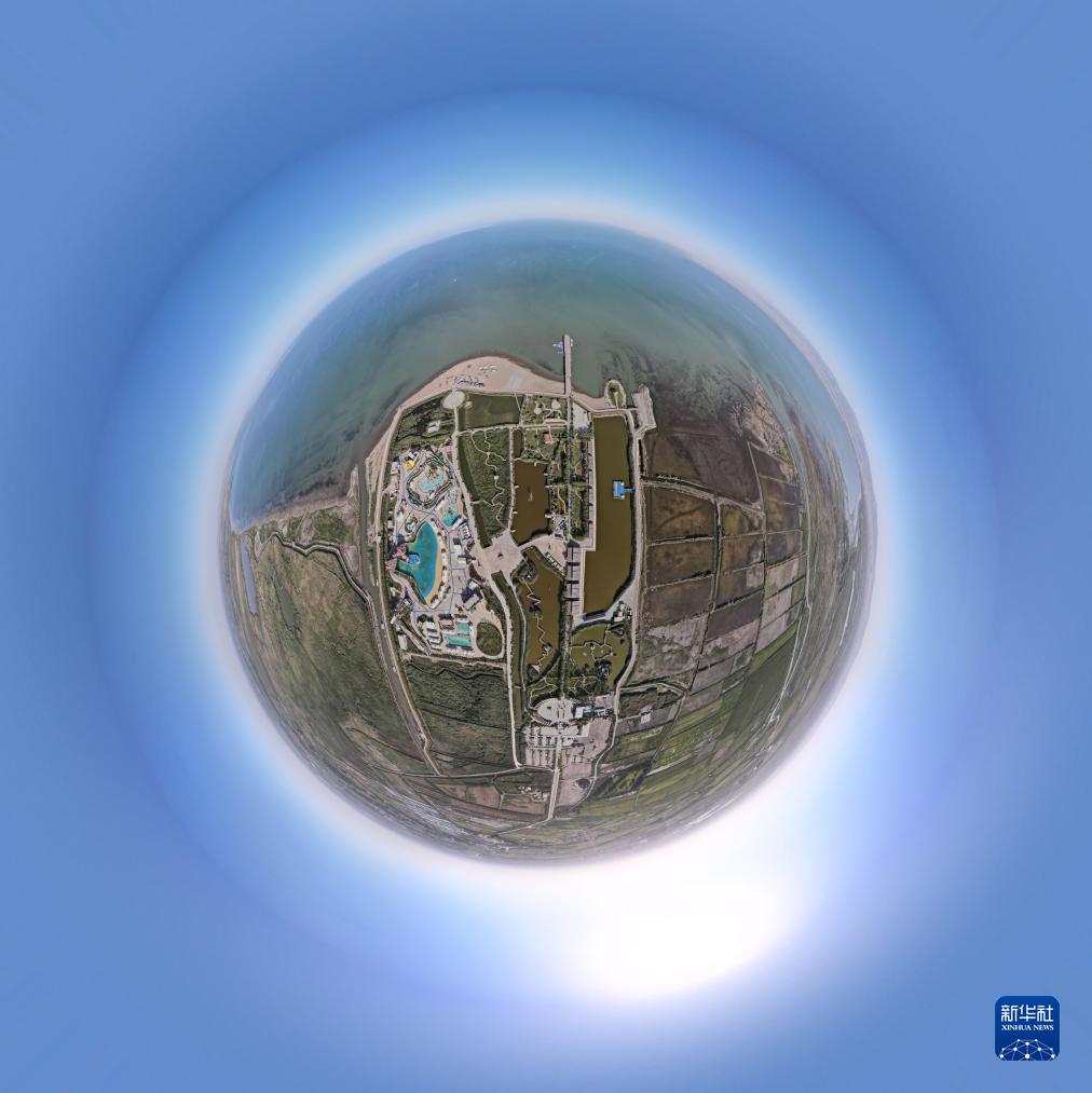 8月31日拍攝的新疆博斯騰湖大河口景區(無人機全景照片)。
