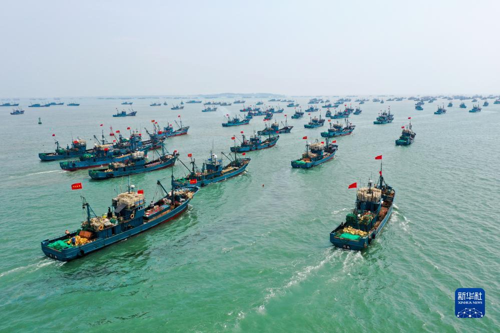 當日,為期四個月的黃渤海伏季休漁結束,所涉漁區迎來“開?!?,各漁港碼頭千帆競發,漁船出海進行捕撈作業。