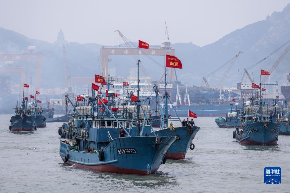 當日,為期四個月的黃渤海伏季休漁結束,所涉漁區迎來“開?!?,各漁港碼頭千帆競發,漁船出海進行捕撈作業。
