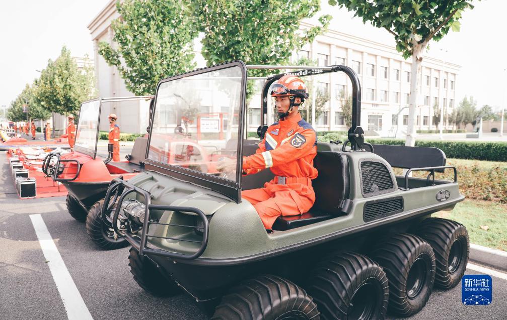 這是成果展展出的水域救援專業裝備——水陸兩用消防車(8月31日攝)。