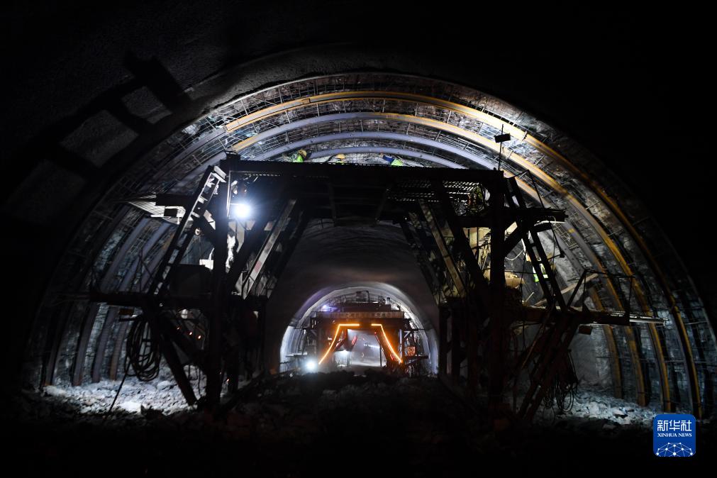 9月1日,施工人員在位于陜西省寶雞市麟游縣的麟法高速石臼山隧道內施工。