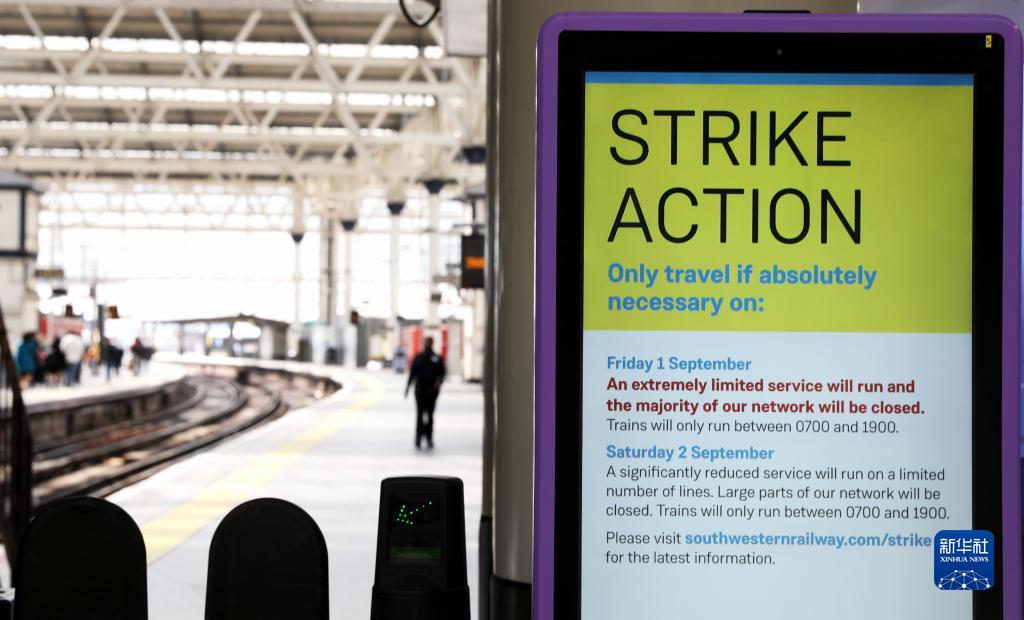 因在收入、工作條件等方面與鐵路運營企業存在分歧,英國鐵路員工在9月1日、2日舉行罷工。由于鐵路服務大幅減少,人們出行面臨不便。