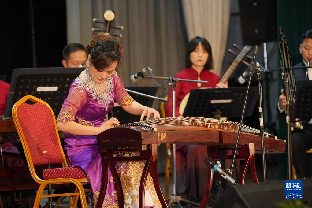 8月31日,演奏者在尼泊爾首都加德滿都的“絲路花語”中國民族音樂專場演出上奏樂。