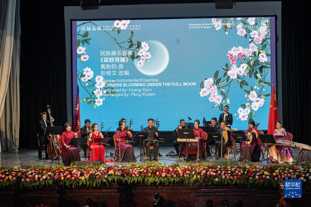 中國“金鐘之星”民樂團8月31日晚在尼泊爾首都加德滿都舉辦“絲路花語”中國民族音樂專場演出。