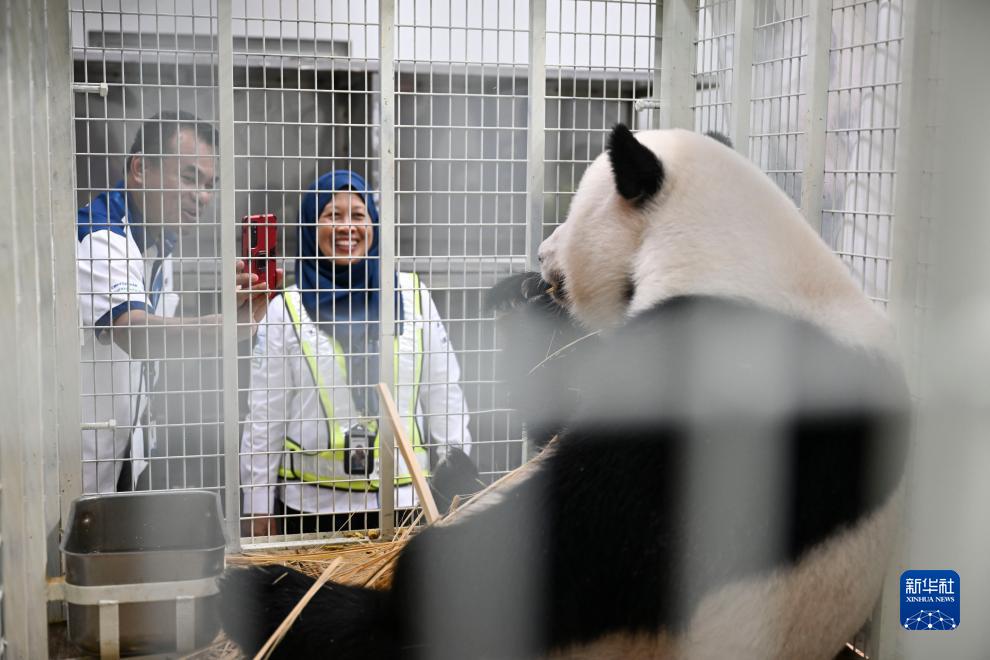 8月29日,工作人員在馬來西亞吉隆坡給大熊貓“誼誼”拍照。
