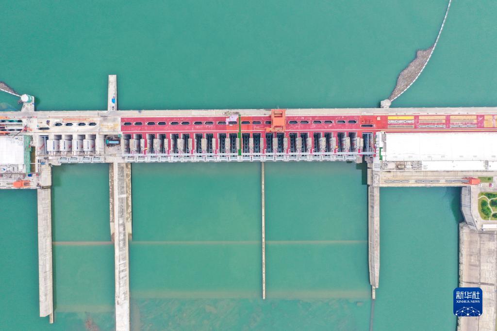 9月2日拍攝的廣西大藤峽水利樞紐泄水閘(無人機照片)。
