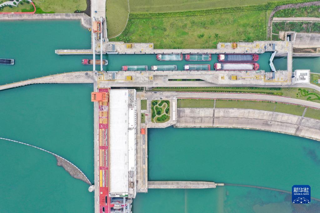 9月2日拍攝的廣西大藤峽水利樞紐船閘(無人機照片)。