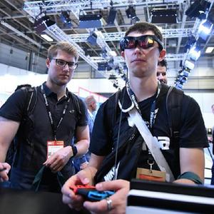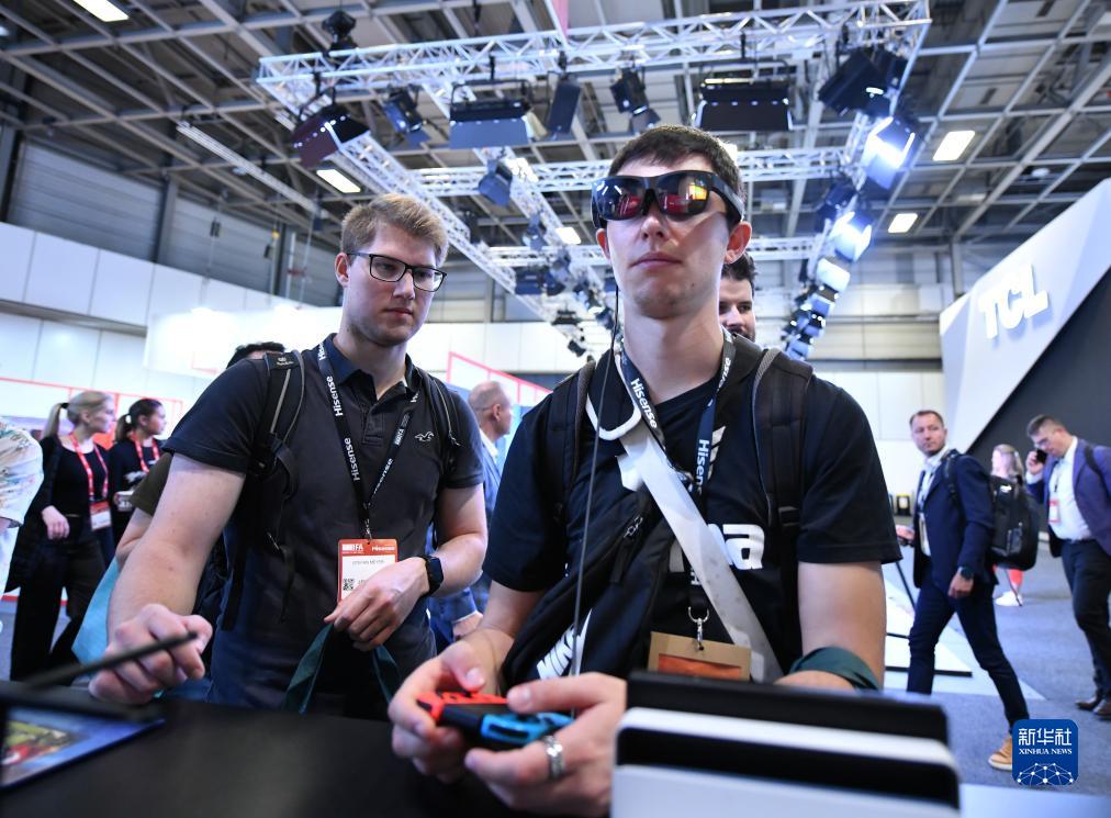 9月1日,參觀者在德國柏林國際消費電子展TCL展區體驗XR(擴展現實)設備。