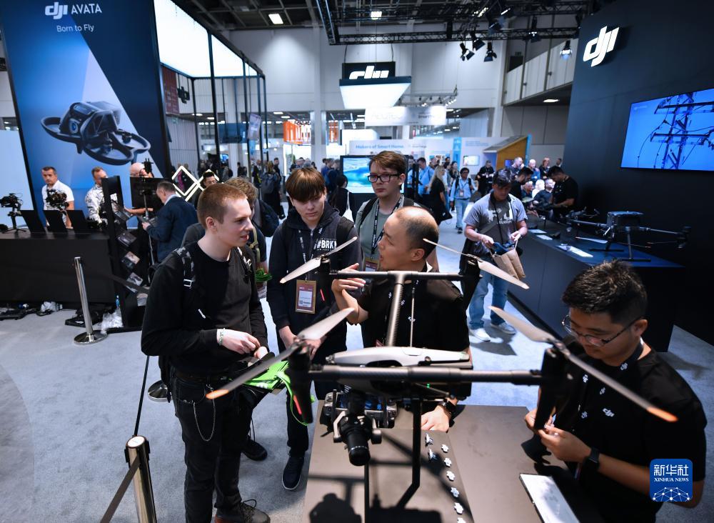 9月1日,人們在德國柏林國際消費電子展參觀大疆展區。