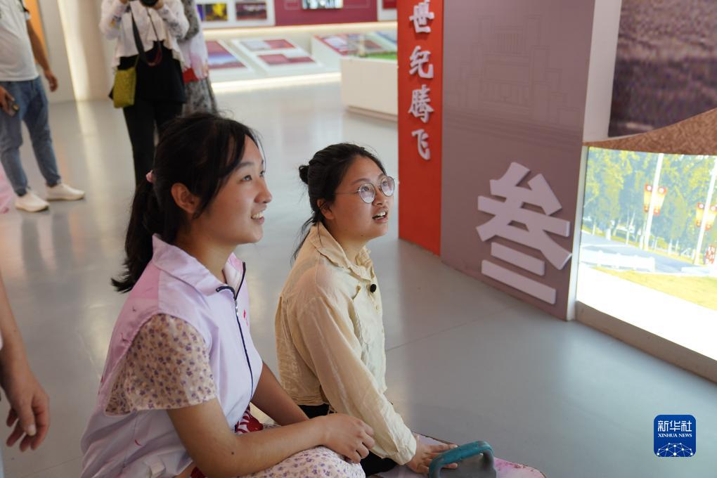 蔣張子怡在學姐的陪同下參觀校園(9月1日攝)。
