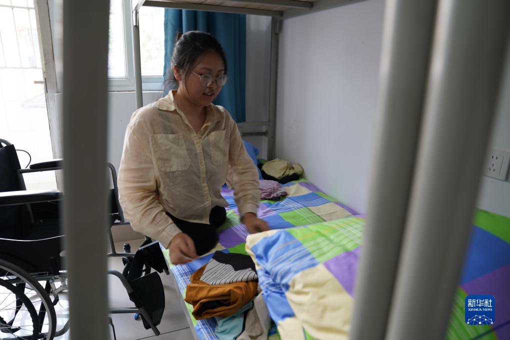 蔣張子怡在學校寢室里收拾衣物(9月1日攝)。