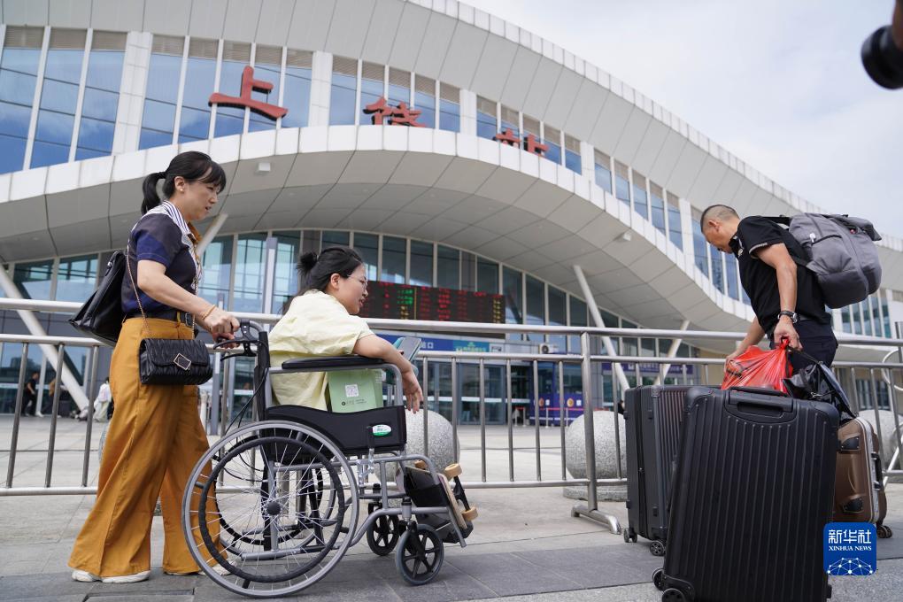 蔣張子怡和父母一起抵達車站準備乘車前往山東臨沂(8月31日攝)。