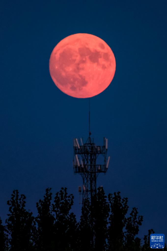 8月30日在山東省淄博市高青縣拍攝的月亮。