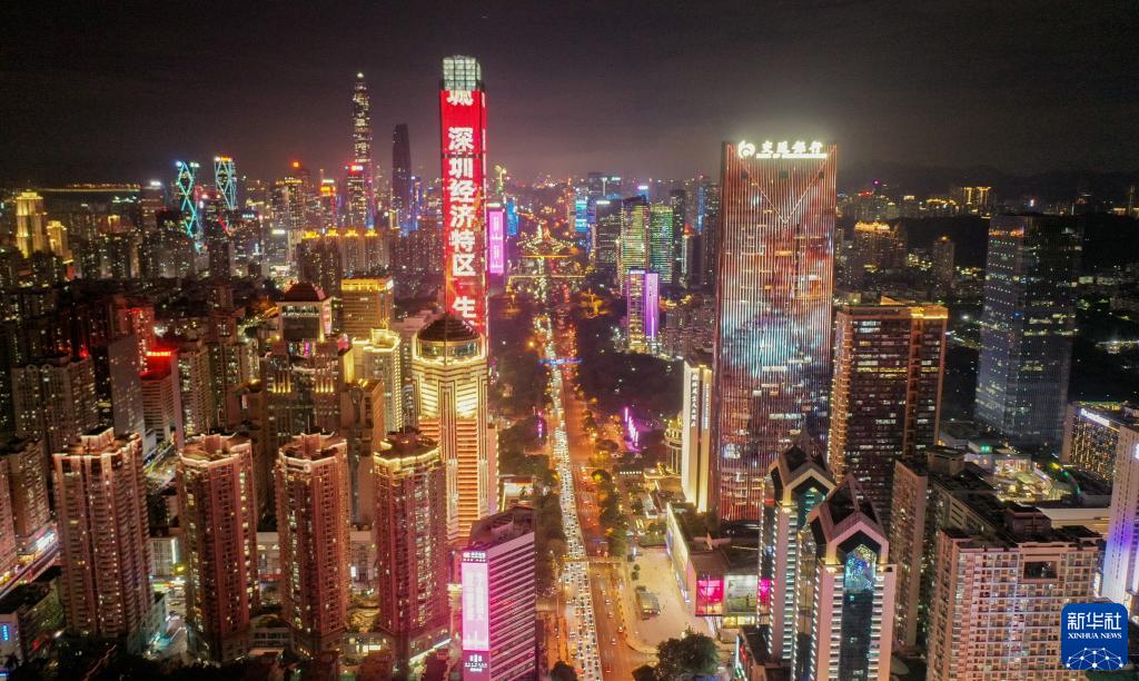 8月26日是深圳經濟特區成立43周年。25日晚,深圳以夜空為幕,以燈光為筆,點亮市區主要建筑為特區慶生。