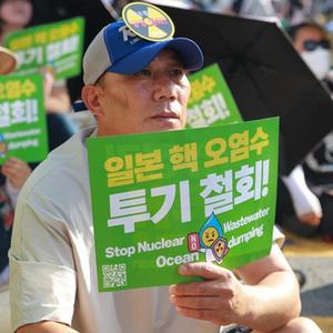當日,韓國多個市民團體在首爾市中心舉行集會,抗議日本核污染水排海。
