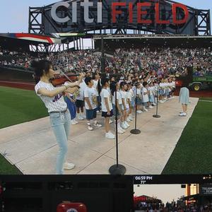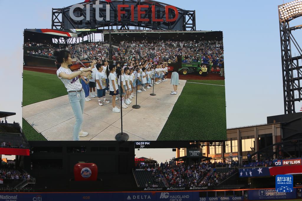 9月1日,在美國紐約大都會棒球隊主場花旗球場,兒童合唱團在“中華之夜”暨“你好!中國”旅游推廣品牌發布活動結束后表演。