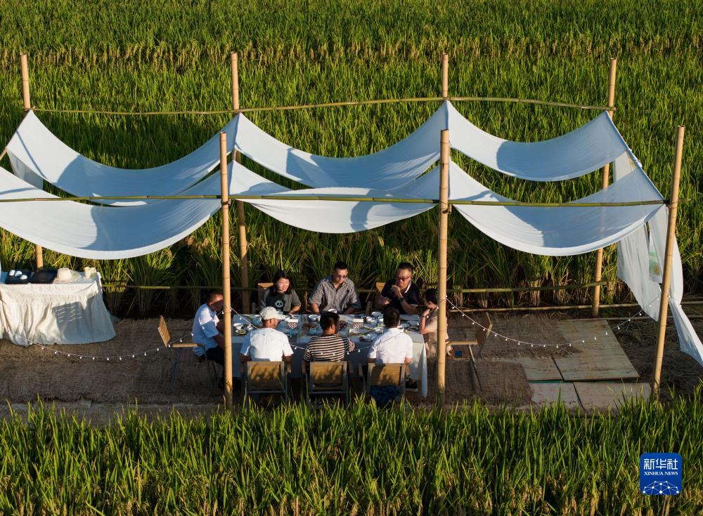 9月2日,一場以“滋味鹽邊·稻香漁歌”為主題的豐收節活動在四川省鹽邊縣惠民鎮興隆村豐收后的稻田里舉行,稻谷收割比賽、稻田音樂會、稻田市集和豐收長桌宴等活動吸引了眾多村民和游客參與。