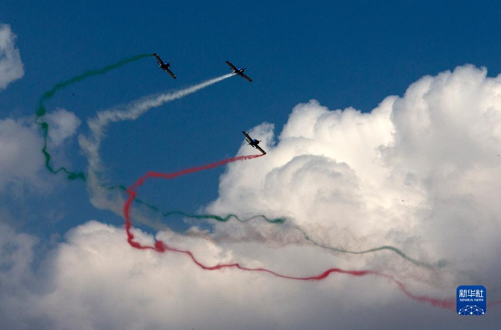 9月2日,在希臘塔納格拉空軍基地的雅典飛行周上,來自意大利的飛行表演隊進行表演。