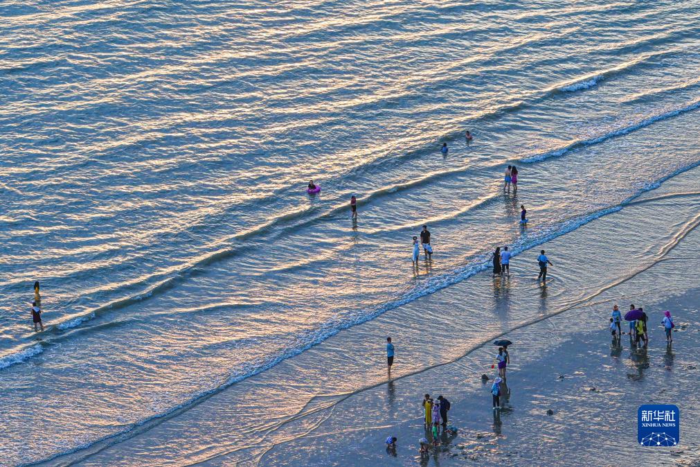 游客在海南省三亞市三亞灣游玩(8月30日攝)。三亞灣位于海南省三亞市主城區南部,海域面積75平方千米,是三亞市作為著名旅游目的地的重要資源依托。