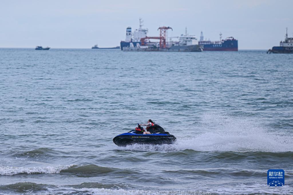 游客在海南省三亞市三亞灣體驗水上項目(8月30日攝)。三亞灣位于海南省三亞市主城區南部,海域面積75平方千米,是三亞市作為著名旅游目的地的重要資源依托。