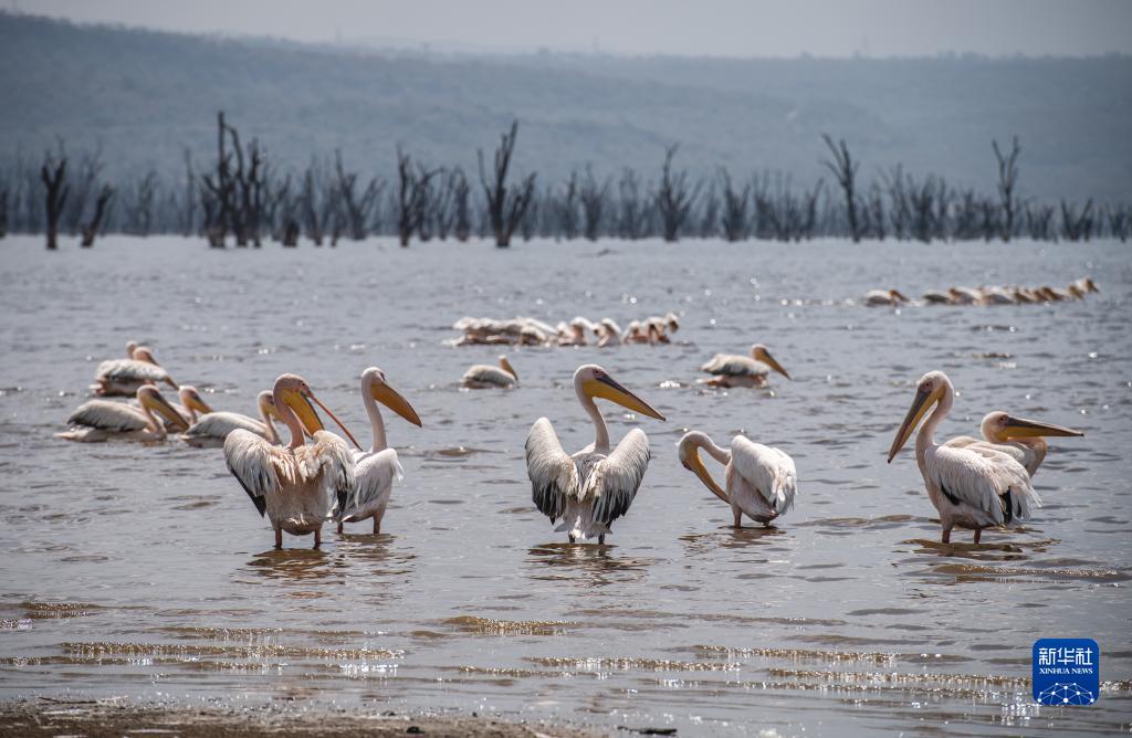 這是9月2日在肯尼亞納庫魯湖國家公園拍攝的鵜鶘。