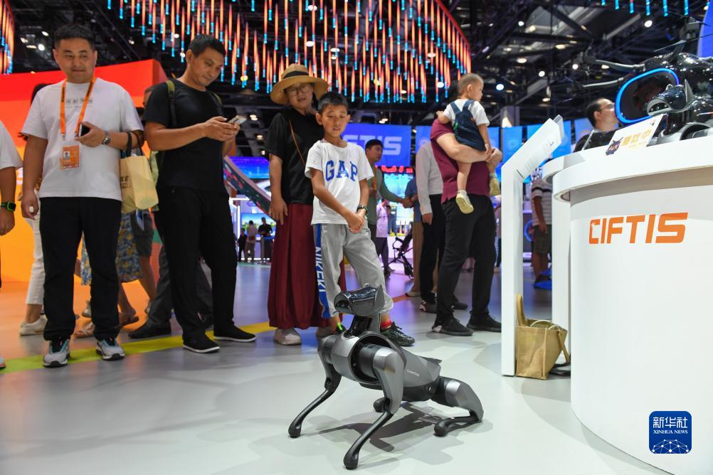 2023年中國國際服務貿易交易會于9月2日至9月6日在北京舉辦,眾多科技產品亮相展區,吸引觀眾駐足參觀。