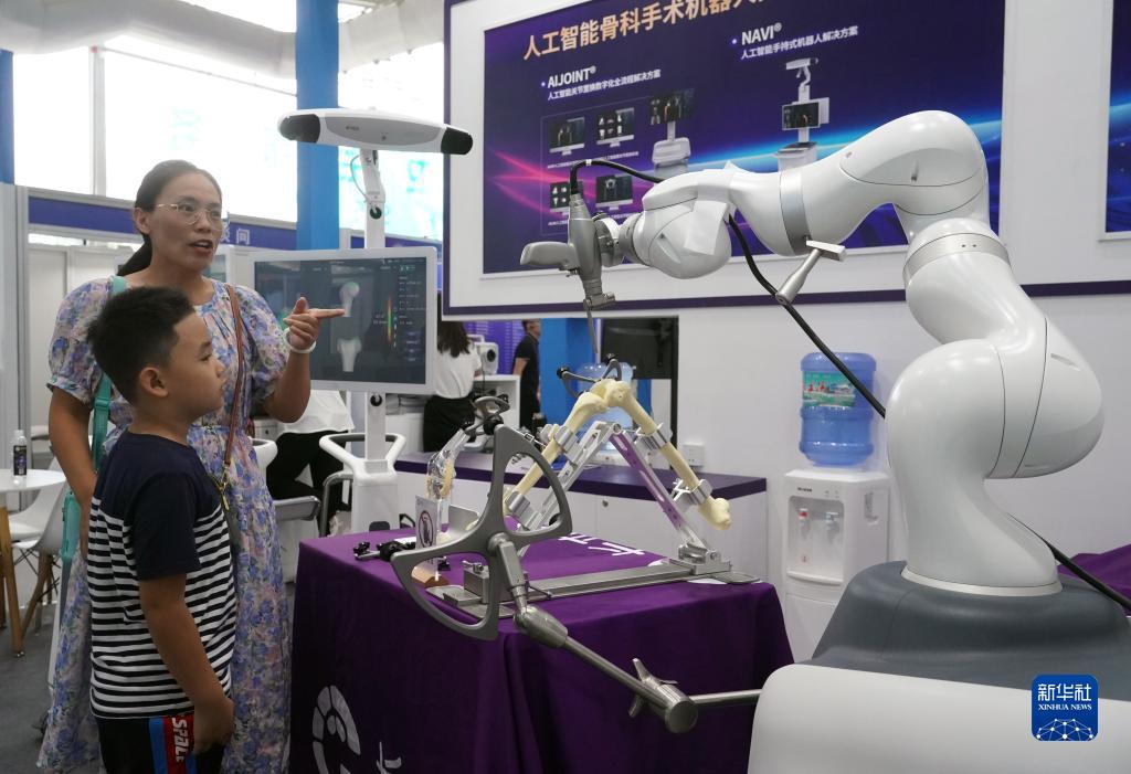 這是9月3日在首鋼園拍攝的一款人工智能骨科手術機器人。