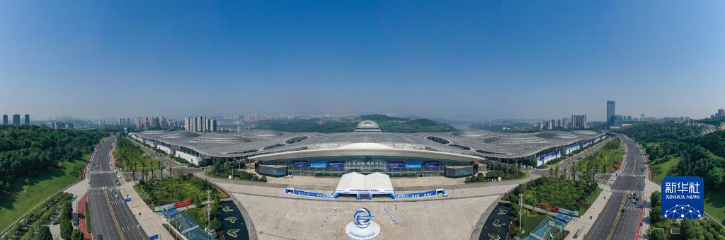 這是9月3日拍攝的2023中國國際智能產業博覽會主會場外景(無人機拼接照片)。
