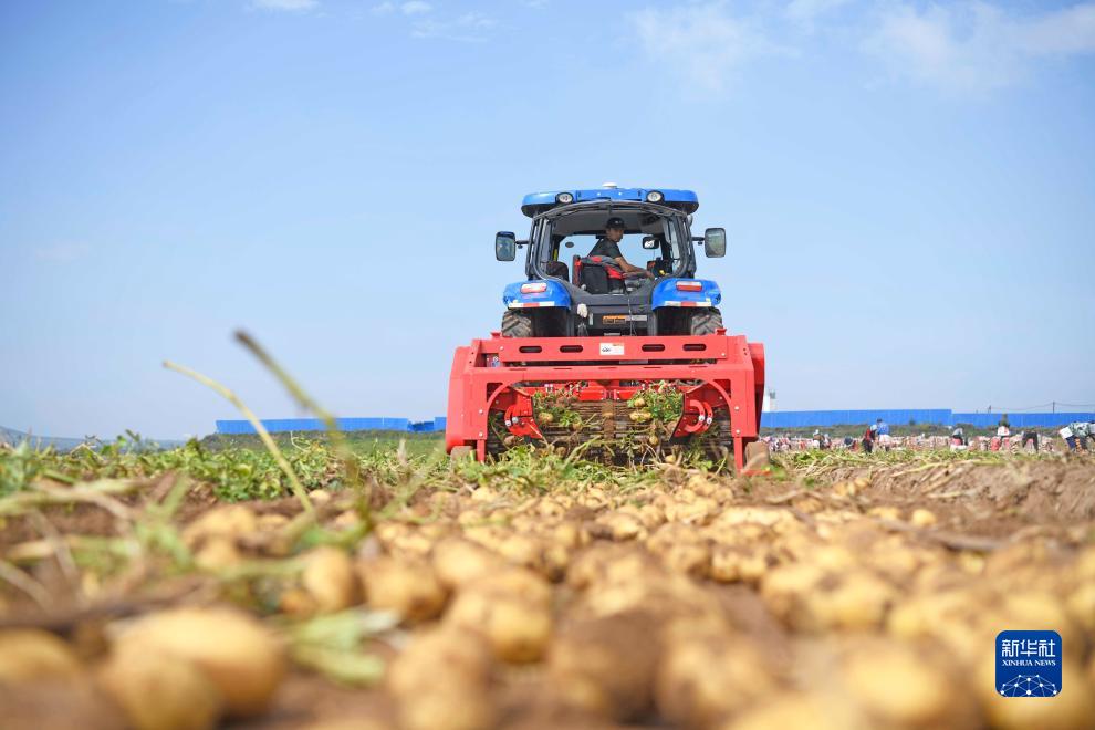9月3日,河北省圍場滿族蒙古族自治縣御道口鎮御道口村一家馬鈴薯種植合作社社員在收獲馬鈴薯。