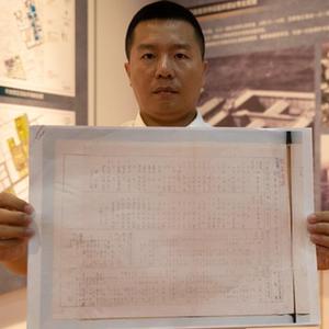 9月2日,在侵華日軍第七三一部隊罪證陳列館,哈爾濱市侵華日軍細菌與毒氣戰史研究會副秘書長金士成展示新一批731部隊軍醫協同犯罪檔案資料。