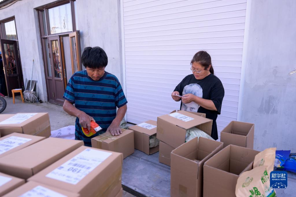 9月2日,阿爾山市西口村村民將當地特產打包,準備發快遞。
