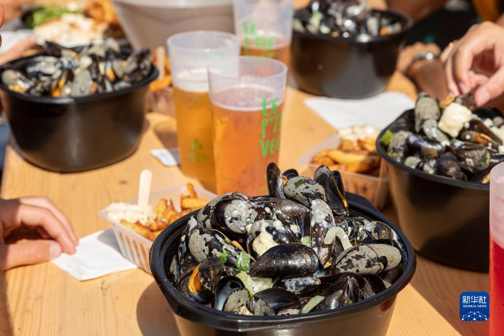 9月3日,在法國里爾舊貨市場上,人們享用貽貝、薯條和啤酒。
