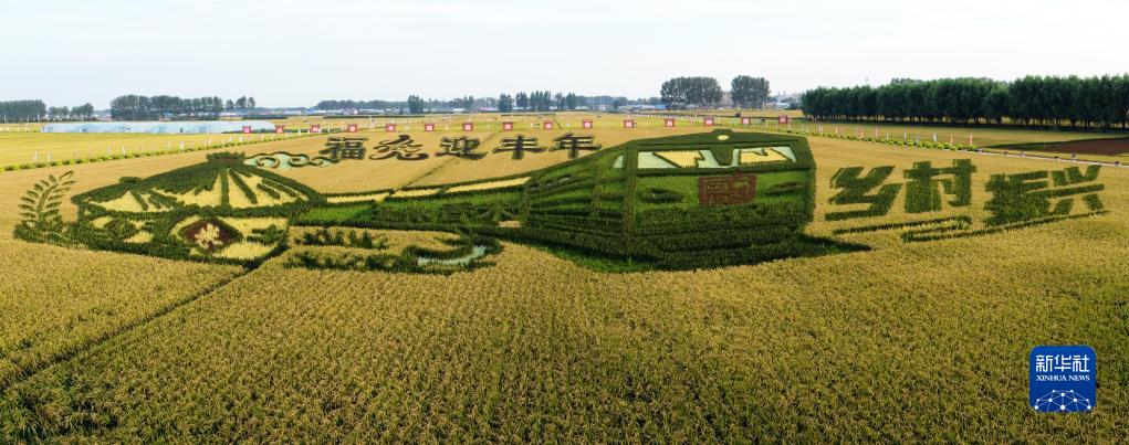 這是中國寒地香米之鄉——黑龍江省綏化市北林區的一處品種稻田展示(9月3日攝,全景照片)。